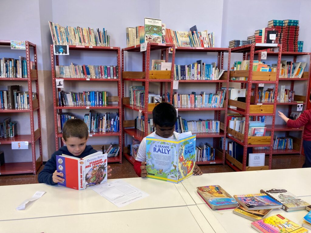 L’apprendimento, fin dalla più tenera infanzia, passa attraverso stimoli di vario genere che permettono di stabilire relazioni simboliche con il mondo esterno, di conoscere, di costruire una memoria che trova protagonista il libro. La carta stampata è il contenitore simbolico del mondo, delle sue storie in grado di evocare emozioni, stimolare la fantasia con immagini, narrazioni, connessioni, echi profondi dell’animo. Le pagine diventano libri, tanti libri con disegni, favole così fondamentali per la ricerca del bambino che la ricerca non è mai finita. È il luogo della scoperta, della crescita, dell’apprendimento, della memoria raffigurata e scritta è la Biblioteca.