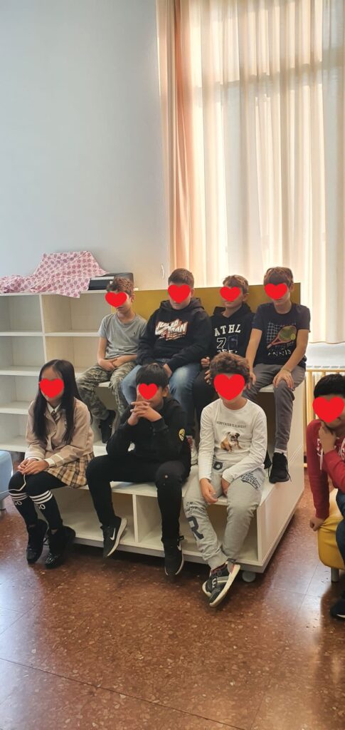 L’apprendimento, fin dalla più tenera infanzia, passa attraverso stimoli di vario genere che permettono di stabilire relazioni simboliche con il mondo esterno, di conoscere, di costruire una memoria che trova protagonista il libro. La carta stampata è il contenitore simbolico del mondo, delle sue storie in grado di evocare emozioni, stimolare la fantasia con immagini, narrazioni, connessioni, echi profondi dell’animo. Le pagine diventano libri, tanti libri con disegni, favole così fondamentali per la ricerca del bambino che la ricerca non è mai finita. È il luogo della scoperta, della crescita, dell’apprendimento, della memoria raffigurata e scritta è la Biblioteca.