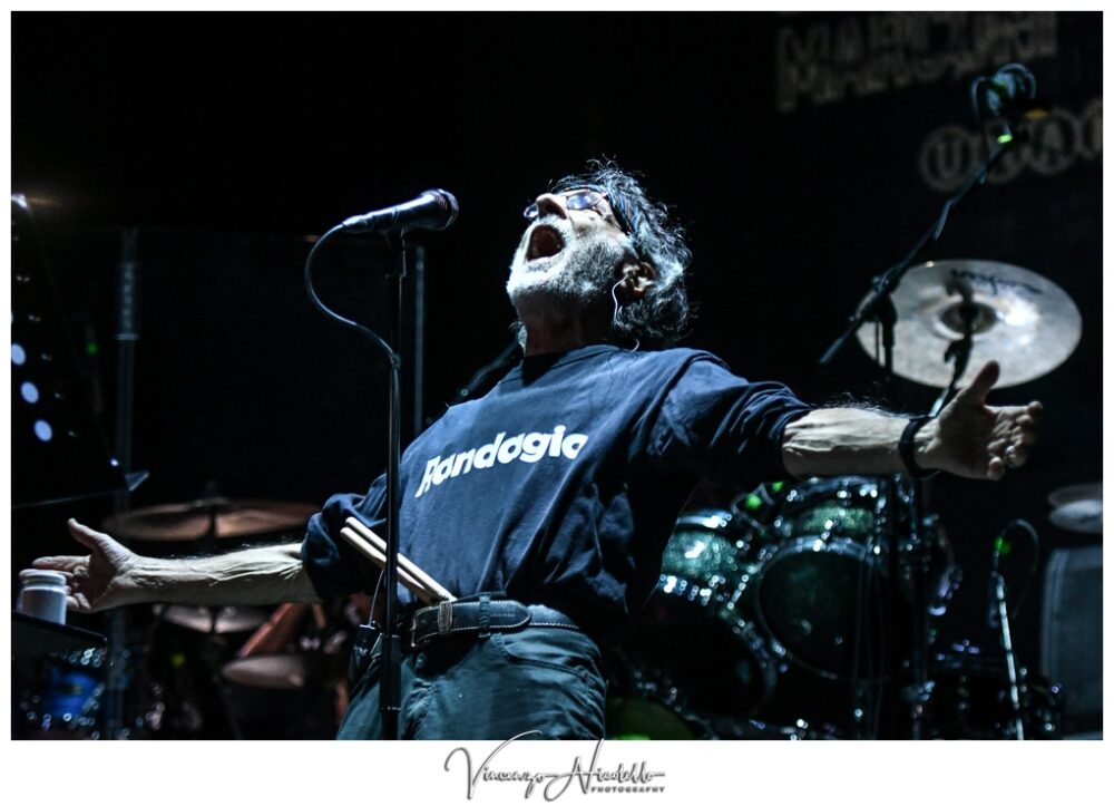 La scaletta si è aperta, con ben quattro brani (tra cui anche lo strumentale Transumanza jam) dell’ultimo disco “I Dreamed of Electric Sheep – Ho sognato pecore elettriche”, pubblicato nel 2021 in duplice versione italiano e inglese. Un lavoro prodotto che si è avvalso anche degli arrangiamenti di Luca Zabbini, che oggi fa parte della band live in veste di tastierista aggiunto).
