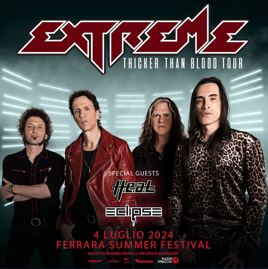 Dopo il sold out registrato a Milano, EXTREME annunciano il ritorno in Italia anche nel 2024! La band americana si esibirà il prossimo 4 luglio 2024 al Ferrara Summer Festival. Prima di loro saliranno sul palco anche H.E.A.T ed ECLIPSE.