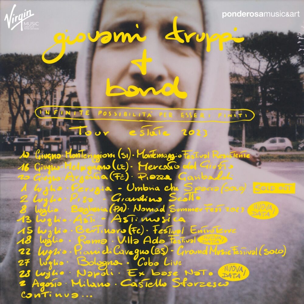 Si aggiungono tre nuove date al tour estivo di Giovanni Truppi, che presenterà sui palcoscenici di tutta Italia il suo nuovo album INFINITE POSSIBILITA’ PER ESSERE FINITI, uscito il 28 aprile per Virgin Music LAS / Universal Music Italy.