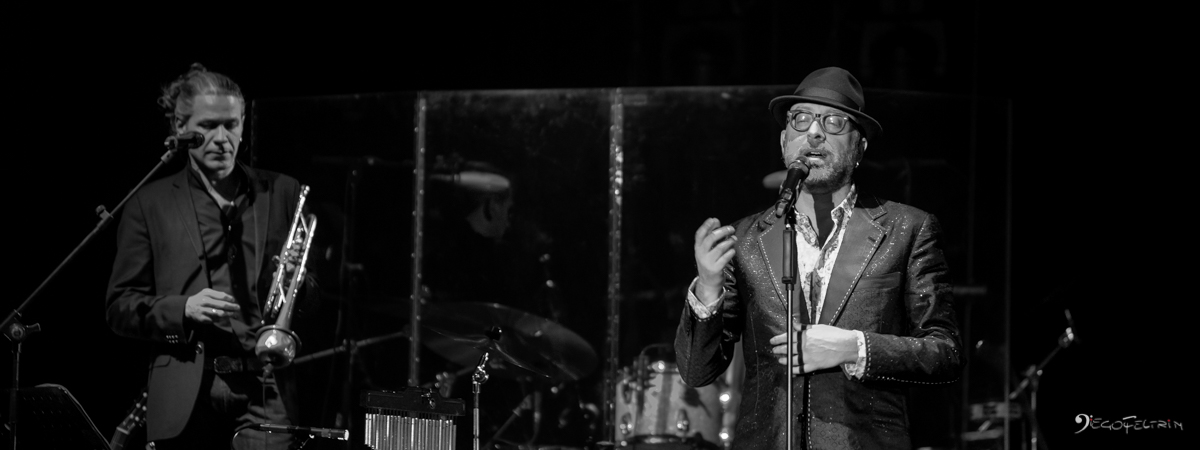 Era accomapagnato sul palco da una Band di tutto rispetto: Alessandro Lugli alla batteria, Federico Malaman al basso, Massimo Greco alle tastiere e programmazione, David Florio alle chitarre e percussioni, Marco Scipione al sax e Fabio Buonarota alla tromba.