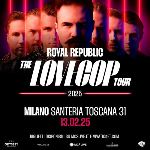La rock band svedese ROYAL REPUBLIC annuncia oggi nuove date del “The LoveCop Tour”, serie di eventi che li vedranno esibirsi in concerto anche in Italia il prossimo anno.
