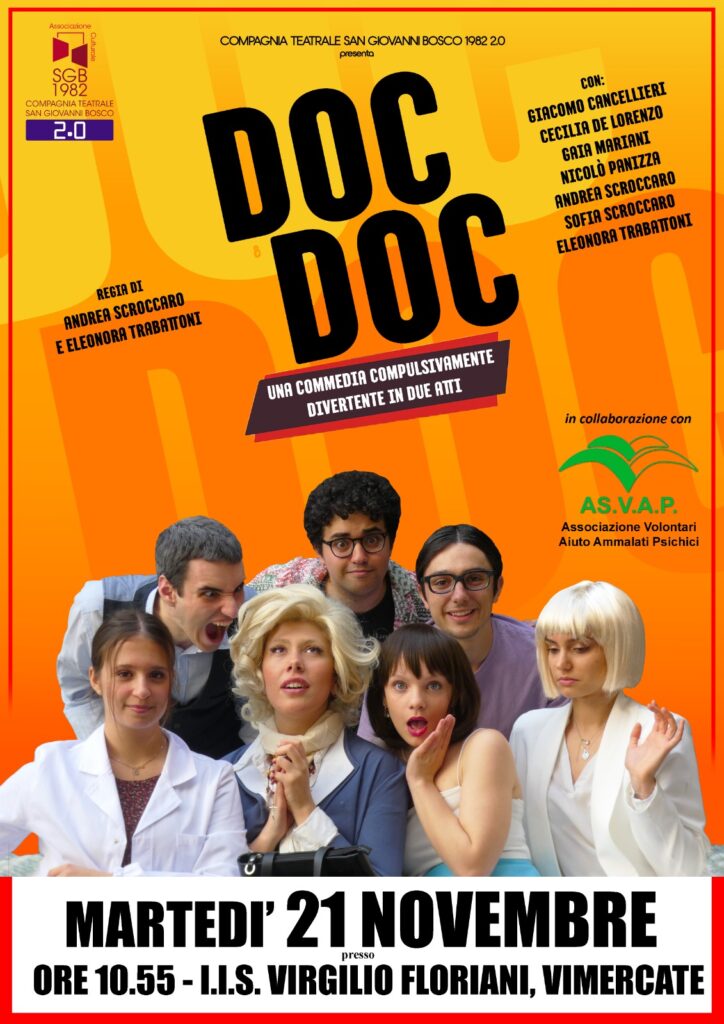 Nell’ambito del progetto che si occupa della demenza senile e che vede coinvolte le classi quinte dell’indirizzo Sanità e Assistenza Sociale parteciperanno alla rappresentazione DOC DOC della compagnia teatrale San Giovanni Bosco che mira a sensibilizzare su questo tema.